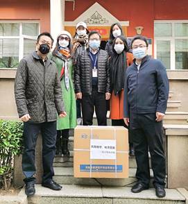 北京校友会会长林菁、常务副会长兼秘书长赵清、副会长吴雨将北京校友会第二批捐赠的5000只口罩送到母校,校友与母校“爱不相隔,共望星空”。