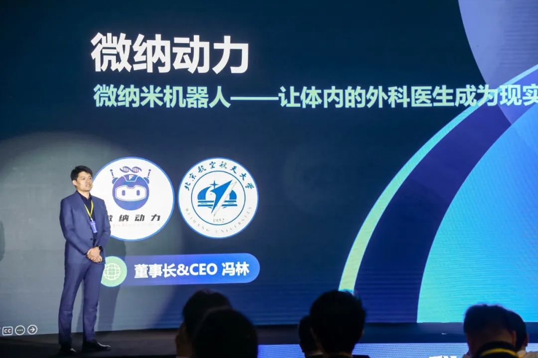 冯林作主题为《微纳米机器人让体内的外科医生成为现实》的演讲。他介绍了两个项目,首先是微纳米机器人项目,主要针对肿瘤治疗,通过精准地将药物输送到肿瘤位置,提高治疗效果并降低副作用。第二是细胞筛选技术,通过非接触物理场控制技术快速筛选出最好的细胞,提高细胞筛选的效率和准确性。最后,冯林以“从0到1,用科技颠覆未来”结束演讲,表达了他对科技创新发展的信心和期待。