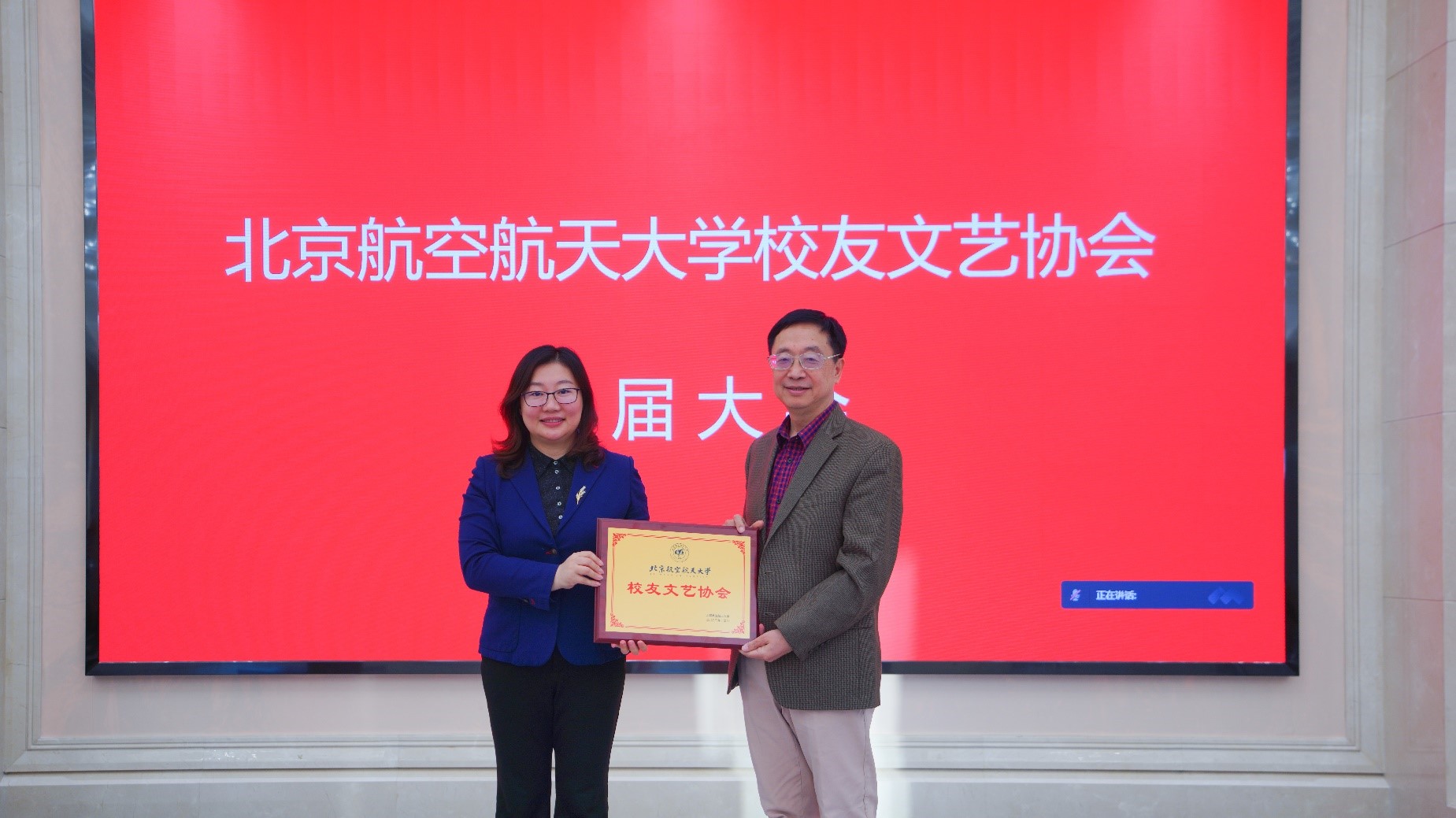 邓怡向北航校友文艺协会颁发会牌,张慧渊向文艺协会会长和艺术顾问颁发聘书,仝敬明向副会长、秘书长、副秘书长颁发聘书。