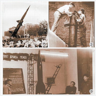 图①国庆十周年纪念活动上的“北京二号”火箭